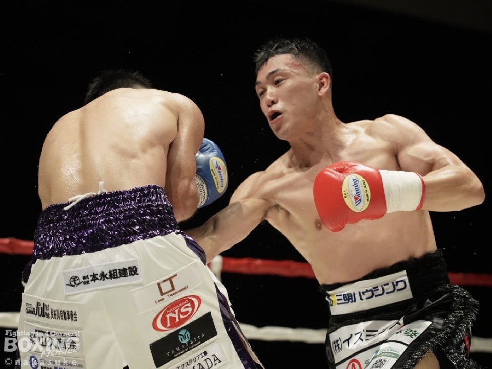 セミファイナルでは、日本バンタム級3位のデカナルド闘凜生(28=六島)が55.0kg契約8回戦で、日本スーパーバンタム級14位の武藤涼太(19=松田)と激突。サウスポー武藤が左ボディアッパーを差し込み先制したが、2回以降はデカナルドがプレスをかけて、ボディ攻撃で攻勢。歯を食いしばりながらパンチを返す武藤に対し、デカナルドはフィジカルの強さを活かして攻め切った。