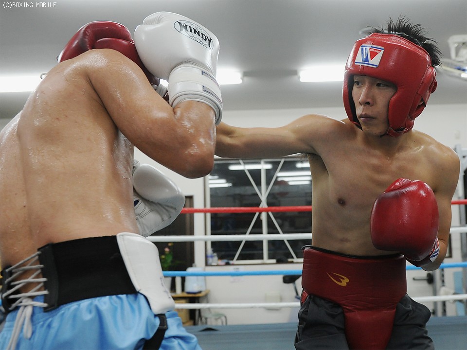 3ラウンドで行われたスパーリングでは、前半こそキレのある動きから6回戦の5階級上の坂本にプレスをかけていた柏野だが、流石に計量3日前とあって後半までスタミナは続かず。それでも得意の左ストレートを何度か当てるなど、元アマチュア全日本ライトフライ級6位の片鱗を見せた。