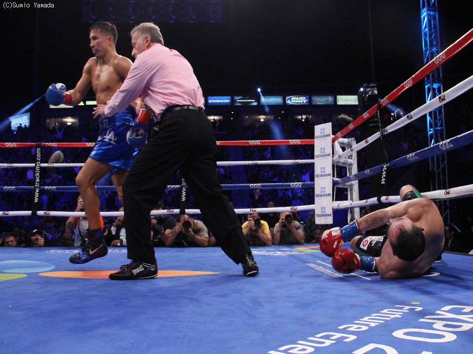 12連続KO防衛を果たしたゴロフキンはリング上でマイクを向けられ、「戦うことは大好き。ルビオは勇敢だった。倒したパンチは強いものだったが、立ってくるかと思った」と戦いを振り返った。話題が今後におよぶと「ミゲール・コット(プエルトリコ=WBC王者)でもサウル・アルバレス(メキシコ)でもフリオ・セサール・チャベス・ジュニア(メキシコ)でもいい。でも、まずはミゲール(コット)とやりたい」と希望を口にした。31戦全勝(28KO)。08年からの連続KOも18に伸ばした。敗れたルビオは67戦59勝(51KO)7敗1分。