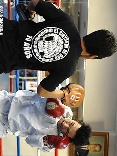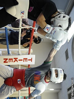 1週間にバルヴェグ・バンゴヤン(比)とのV4戦(4月30日 日本武道館)を控えるWBC世界スーパーバンタム級チャンピオン、西岡利晃(33歳 帝拳)が23日、マスコミにスパーリングを公開した。