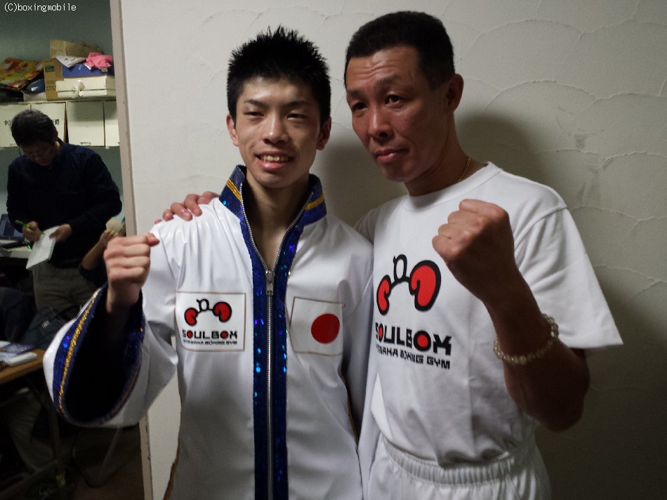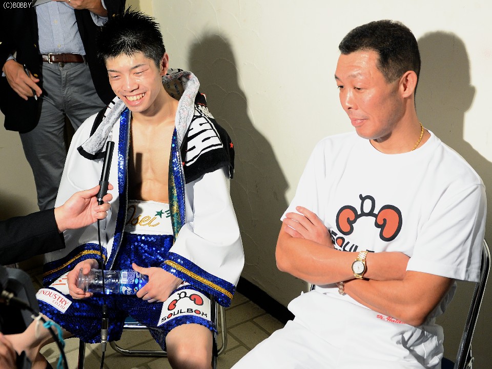 「1Rは取りにいく予定が取られてしまった。反省点はあるが、全勝の王者倒したので合格点です」会見に同席した畑中清詞会長は「世界戦は来年の春か夏にできたらいいですね」と笑顔を見せた。