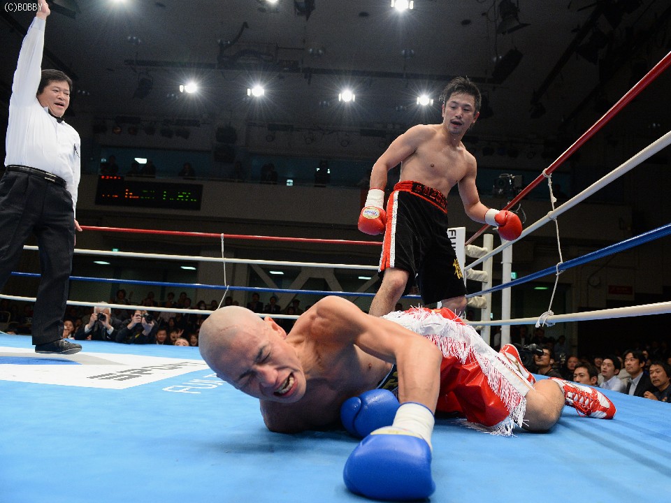 試合後に「これまで気持ちで負けていた」と話した鈴木は、苦手とするサウスポーを相手に序盤まで膠着状態が続いたが、5ラウンドに会心の右ストレートでダウンを先制。ここは立ち上がった松田だが、鈴木は間髪いれずにパンチをまとめ、2度目のダウンを奪うと同時にタオルが投入された。