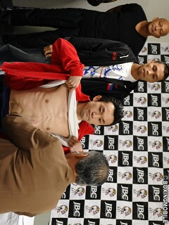「(西岡の印象は)初めて会った。試合に向けて強い気持が湧き上がった。西岡と比べ、スタミナも十分あると思う。(リーチ差が5cmあるが)試合には影響しない。ナックルは私の方が大きい。パンチが当たれば西岡はダウンすると思う」