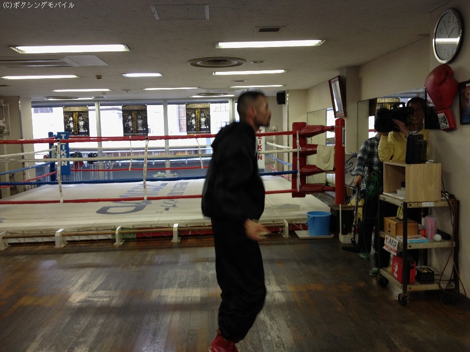 順調に調整を続けているというプエルタは、シャドー、ミット打ちを公開した後、サンドバッグを相手に軽く汗を流すと、縄跳びでこの日の公開練習を締めくくった。