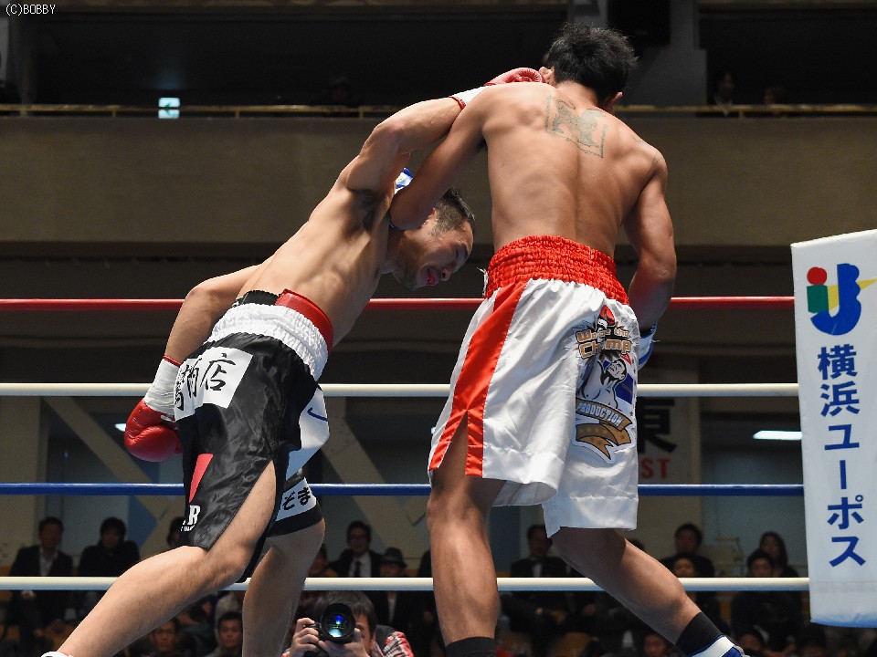 好戦的なケーオクラー・チャイヨンジム(タイ)を迎えた近藤は、立ち上がりからフェイントを交ぜた前後の動きで惑わし、ジャブで詰めては左ボディ、右フックをテンポよく繰り出す。するとラウンド半ば、ロープに詰めたところで相手のテンプルにアウトサイドから被せるように右を直撃。この一発でキャンバスへ仰向けに倒れたケーオクラーは、起き上がれずに10カウント。近藤が初回KOで、昨年4月以来となる1年7ヶ月ぶりの白星を上げた。