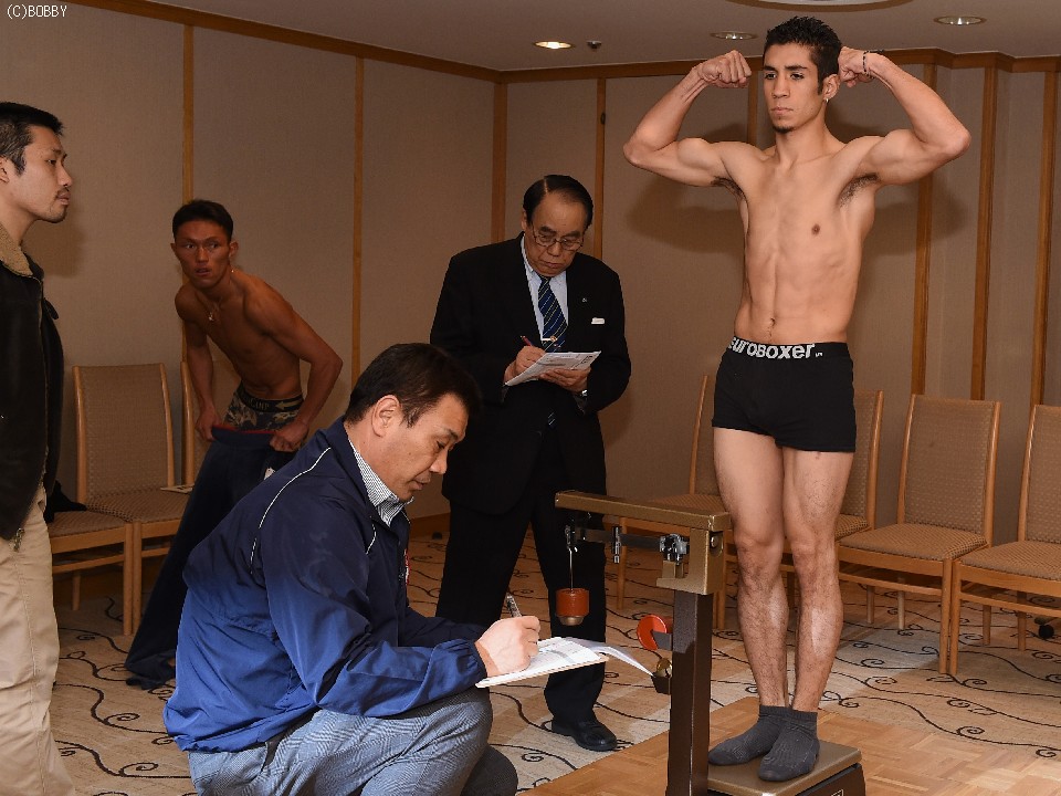 先に計量台に上がった赤穂は100gアンダーの53.4kg。アントニオ・ガルシア(20=メキシコ)は500gアンダーの53.0kg。両者、落ち着いた様子で計量を終え、ガルシアは早々と会場を後にした。