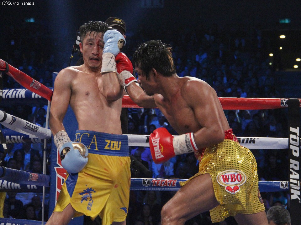 この試合はセミファイナルのフライ級ノンタイトル12回戦として行われた。五輪連覇の実績を持つゾウに対し、クワンピチットはWBO3位の肩書を持っている。パッキャオに酷似の小柄なクワンピチットが圧力をかけ、長身のゾウが捌きながら迎撃する展開となった。2回、ゾウは右のカウンターでダウンを奪い、再開後、右フックのカウンターでダウンを追加。さらに連打を浴びせたところでラウンド終了のゴングが鳴った。構えを頻繁に左右に変えながら戦うゾウは4回と5回にもチャンスをつかんだが、ダウンに結びつけることはできなかった。6回、クワンピチットはローブローで減点を科されるなど苦しい状況に拍車がかかった。再開後、ゾウは押し込むようにしてダウンを奪ったが、ここでも詰め切ることはできなかった。8回、バッティングでゾウが左目上に裂傷を負ったが、試合は続行された。その後も何度かゾウはチャンスをつかんだが、そのたびに反撃にもあった。最終回、右を決めてこの試合4度目のダウンを奪ったゾウだが、自身も左目上を大きく腫らすなど内容的には決して楽な戦いではなかった。採点は119対106が二者、もうひとりは120対103だった。来年2月、IBF王者アムナット・ルエンロエン(タイ)への挑戦を計画しているゾウは6戦全勝(1KO)。クワンピチットは30戦27勝(12KO)3敗。