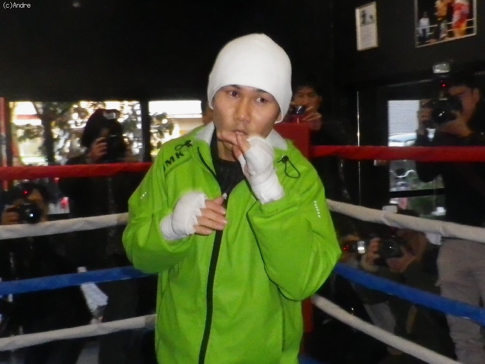 試合12日前とあって、この日はシャドーを4ラウンド、バック打ちを3ラウンドと軽めのメニューを消化した高山だが、それでも軽快な動きで好調ぶりをアピールした。