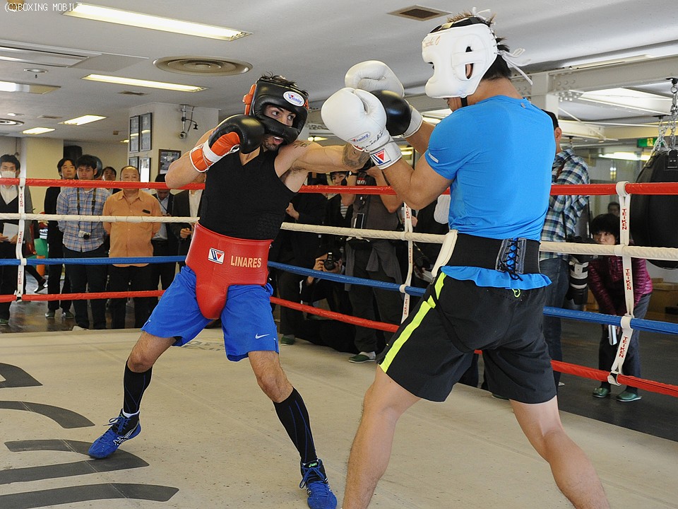 スパーリングを前に、リナレスは日本語とスペイン語を織り交ぜながら笑顔で会見に応じた。「体重は3キロ・オーバーで、ものすごく順調に調整ができている。フィリピン人のパートナーを相手にスパーリングをこなし、一日に12ラウンドやったこともあった」と内容の濃い練習ができたと強調した。スパーリングの総数は110ラウンドを越え、「2階級制覇を果たしたころよりも攻撃的なスタイルになっている」と浜田剛史代表はフォローした。
