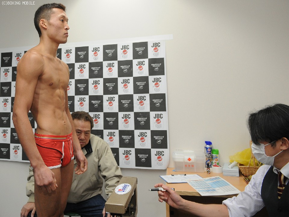 明日17日、後楽園ホールで開催されるOPBF東洋太平洋スーパーフェザー級タイトルマッチ、王者ジョムトーン・チューワッタナ(25=タイ)対同級1位・金子大樹(26=横浜光)の前日計量が都内の日本ボクシングコミッション内で行われた。