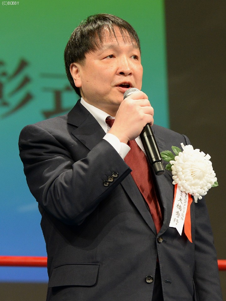 式典の冒頭、挨拶に立った日本プロボクシング協会の大橋秀行会長は、昨年の盛り上がり、また過去最多、男女合わせ17名の世界王者が誕生したことを受け、素晴らしい一年だったと総括。ファンに感謝し、2015年もボクシング界一丸となってファンが望むカードを提供したいと誓った。