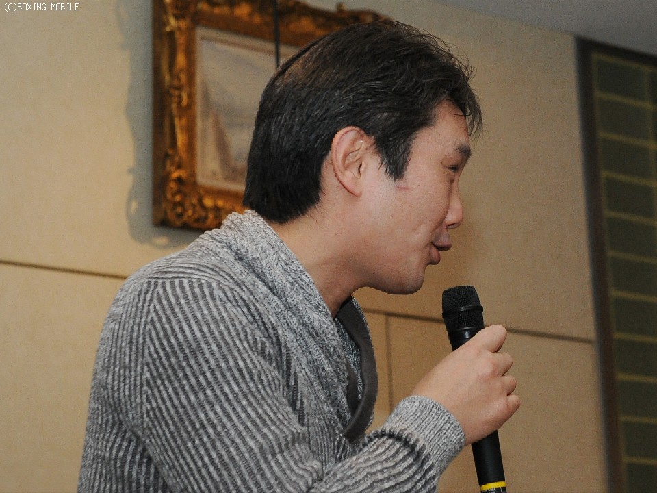 竹原氏とジムを切り盛りする元2階級制覇王者の畑山隆則マネージャーは、「もし竹原がいなくなれば僕が会長になれた。素直に喜べない」と、とんでもない言葉を吐いたが、すぐさま特別顧問で現駒沢大学ボクシング監督の中島成雄氏が「竹原会長のためにいろいろな治療法を探しまわったのは畑山くん」とフォロー。竹原氏も「普段は付き合いにくい相棒ですが、僕のことをここまで心配し泣いてくれるとは思わなかった」と鬼の目にも涙だったことを暴露した。続けて「70、80歳まで生きられるように頑張ります」と話す竹原氏に、「60歳ぐらいにしとけ」とまたも畑山氏から毒舌が飛び、爆笑となった。