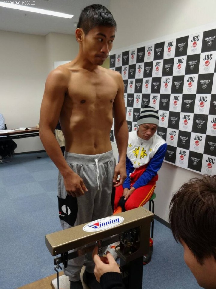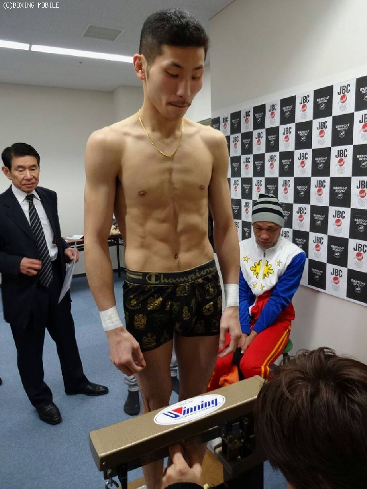 落ち着いた表情で姿を見せた岩佐は54.3kgで計量をパスし、決定戦が中止となった心境を語った。「減量に入っていた時に中止と聞いたのでがっかりしたが、こればかりはしょうがない。でも、カバジェロがあんな状況(IBF王者ランディ・カバジェロ/米 ※足首を痛め2/27の初防衛戦が中止)で、決定戦をやらなくても指名があるかもしれない。まわりも色々と動いてくれているそうなので、希望は持っている。神様は見捨てていなかった」。続けて「モチベーションは落ちていない。今回のことで世界を獲るという気持ちが一段と強くなった。明日は圧倒的に勝つ!」と意気込んだ。