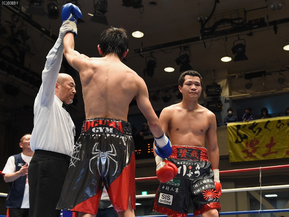 2013年東日本Sフライ級新人王、田之岡条(小熊)と2014年全日本フライ級新人王、山下賢哉(古口)による一戦は、田之岡が足を使って手数とリズムでポイントを稼いで山下に初黒星を付けた。