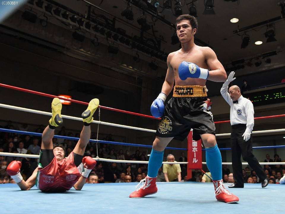 左右のボディフックを振るい、出だしから快調に飛ばした土居だったが、サウスポーのラウエルが速いジャブからテンポよく左に繋げると、勢いを封じられた。すると3回、土居が初回と同じく思い切って左右ボディで攻めると、ここからラウエルが本領を発揮。左ストレートと鋭い右フックで立て続けに3度のダウンを奪い土居をノックアウト。最後の望みを絶たれた土居はリング上で涙を流し、感謝とともにファンに別れを告げた。