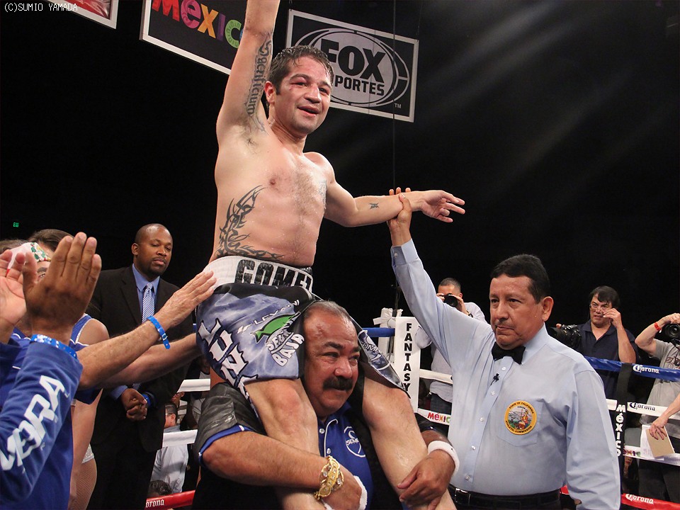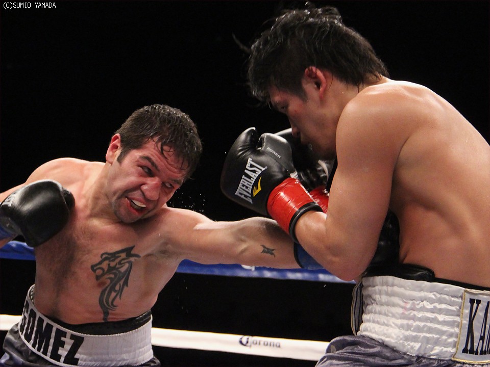 オッズでは7対4で有利とみられていた亀海だが、ベテランらしいゴメスの巧妙なボクシングの前に失点を重ねることになった。亀海は序盤から圧力をかけ、距離を詰めて右から左の返しを狙う。一方のゴメスは左右に動きながら手数で優勢を印象づけ、ジャッジから支持を取りつけていった。4回、ゴメスはバッティングで減点1を科されたが、これが大きな影響を及ぼすことはなかった。終盤に入っても亀海は圧力をかけて出たが、ゴメスのクリンチに攻撃を寸断される場面も目立ち、思ったような展開に持ち込めない。8回には強引な打ち合いに持ち込んだが、ゴメスを倒すことはできなかった。2度の世界挑戦を経験しているゴメスは最後まで動きと手を止めず、10ラウンドを戦い切った。採点は三者とも98対91でゴメスを支持していた。貴重な勝利をあげたゴメスは33戦25勝(12KO)6敗2分。亀海は29戦25勝(22KO)3敗1分。この3敗と1分はいずれも米国で喫したもの。