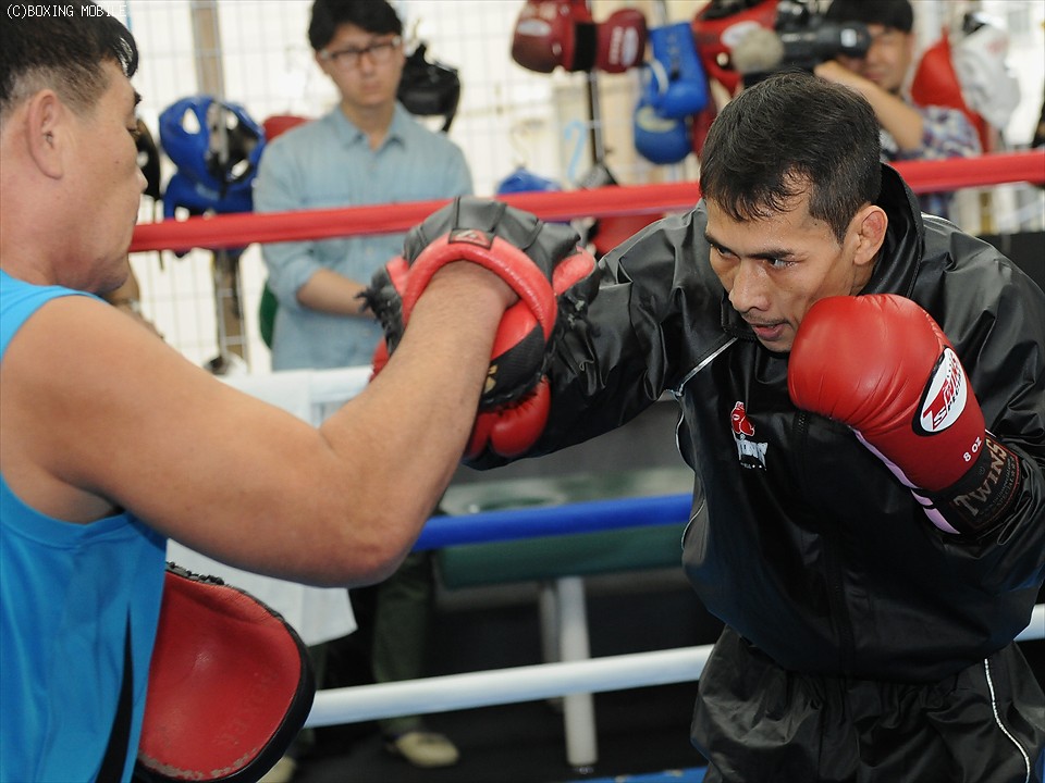 6日に東京・大田区総合体育館で開催されるWBA世界ライトフライ級タイトルマッチ、王者・田口良一(28=ワタナベ)が初防衛の相手として迎える同級14位、元WBA世界ミニマム級王者のクワンタイ・シッモーセン(30=タイ)が3日、都内のジムで練習を公開した。