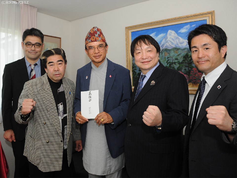 東京・目黒区のネパール大使館を訪れた大橋協会長は、マダン・クマール・バッタライ大使に謁見し、「3年前、日本が最悪の時には多くの国に助けて頂いた。お互い様の精神で今回は日本がネパールを助ける番です」と哀悼を述べるとともに、「今後も(ボクシング界からの援助を機に)様々なスポーツ界にも協力を呼びかけたい」と表明。バッタライ大使も「日本の公的・民間の支援は迅速で的確でした」と感謝を示した。