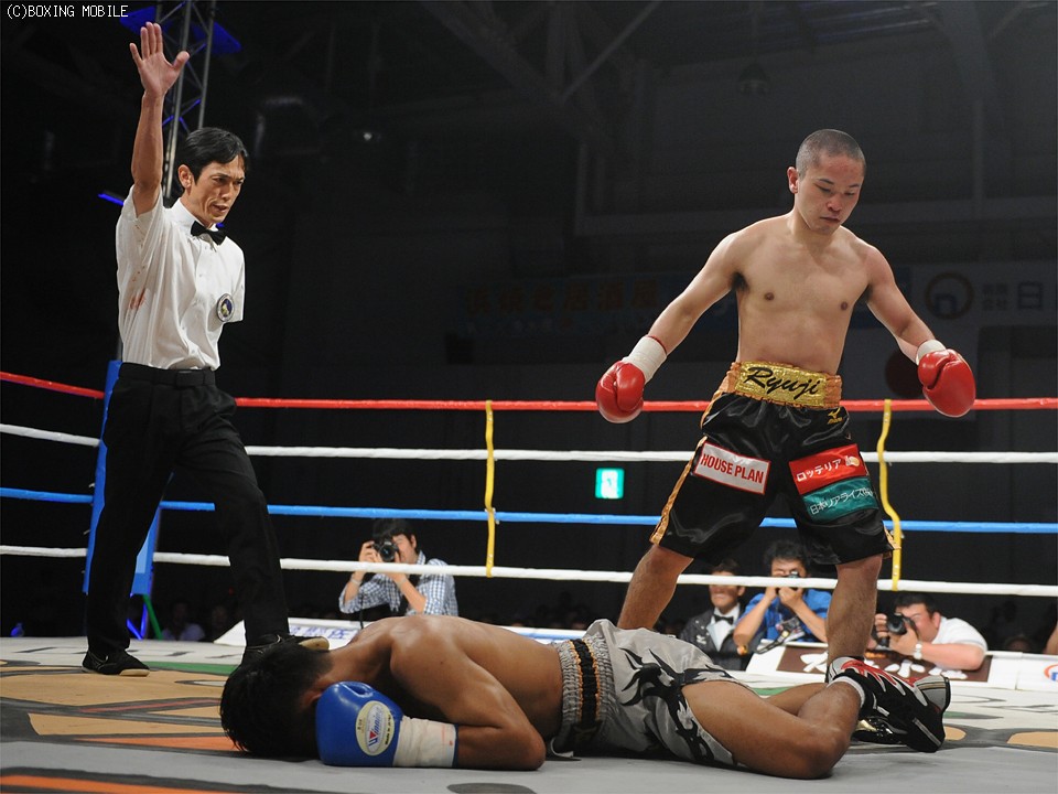 地元の大声援、さらにジムメイトの大橋ジム所属の選手たちが見守るなか、7ヶ月ぶりのリングに立つ原に注目が集まった。初回、ジャブで様子を見ながら右を打っていった原だが、離れ際にペッチナムチャイ・ソークラウォン(タイ)の右ストレートをもらうとバランスを崩し、しりもちをつくダウンを喫する。だが、苦笑いを浮かべた原にダメージは感じられず、続く2ラウンド、積極的に前に出て左ボディを打ち込むと、ペッチナムチャイは明らかに効いた表情を浮かべ、ここから一気にボディを連打。7連続でめり込ませるとペッチナムチャイはたまらずダウンし、そのままカウント10が数え上げられた。