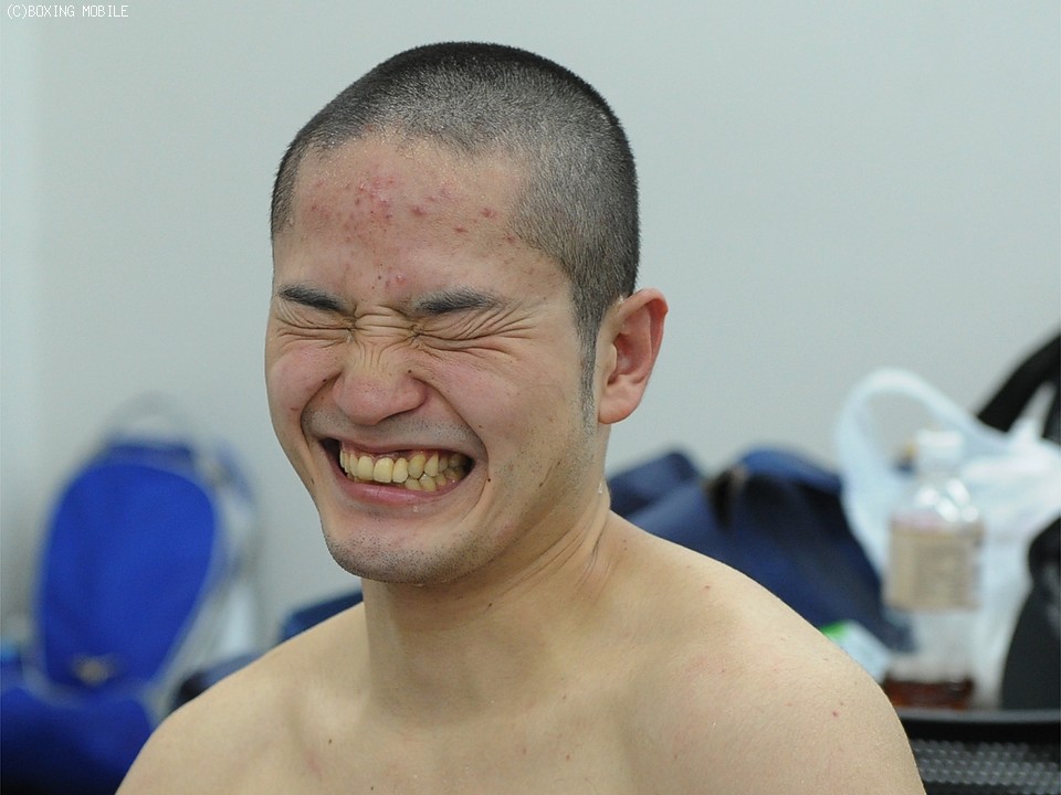 この日一番の歓声が巻き起こり、ひとまず再起を果たした原は、控室では一安心といった感じの笑顔で会見にのぞんだ。「初回のダウンはバックステップしたときに肩にパンチが当たりバランスを崩したものでダメージはなかった。ボディが効いたのがわかったので一気にたたみかけた」と試合を振り返った。気合いを入れるため、試合の2日前に丸刈りにして試合にのぞんだ原。前日の田中の試合は、テレビ観戦が出来ず、結果だけを知ったという。今後はコンビネーションを多彩にしたいと、課題を挙げることも忘れなかった。