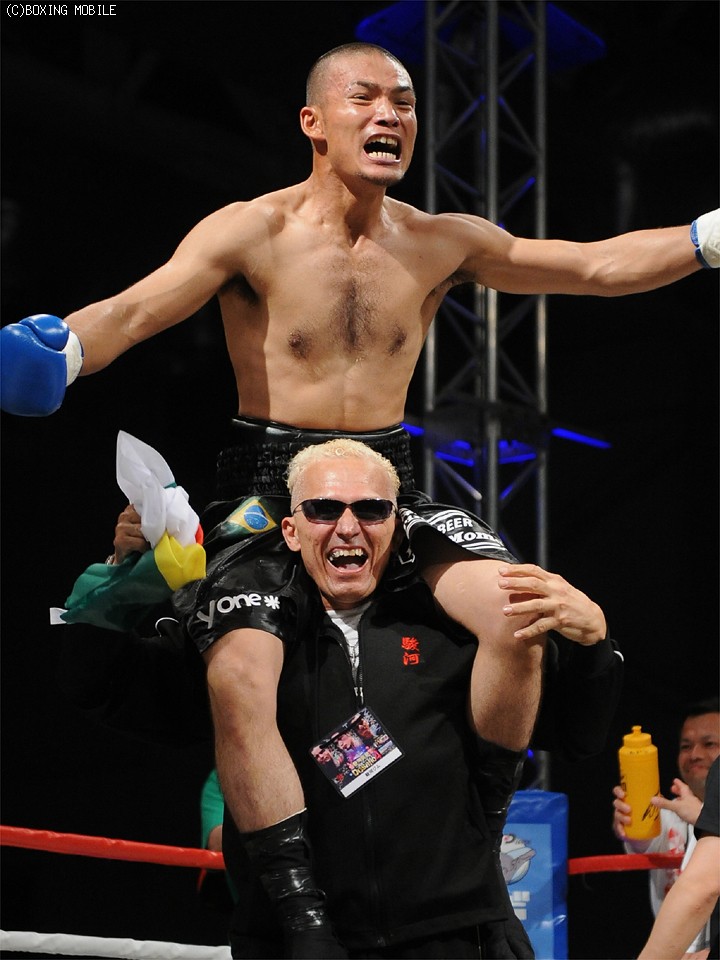 立ち上がり、ジャブで先手を取った青木が右ストレートを効かし、早くもピーターの体勢を崩すとそのままロープへと押し込み、左フックから怒涛の連打を浴びせた。ピーターも僅かに左右を返したが、最後は耐え切れずにダウン。起き上がるもダメージの色は濃く、レフェリーが10カウントを数え上げた。この日の興行「駿河男児Desafio4」は全試合賞金マッチとして行われ、初回KOの青木には7万円のボーナスが手渡された。