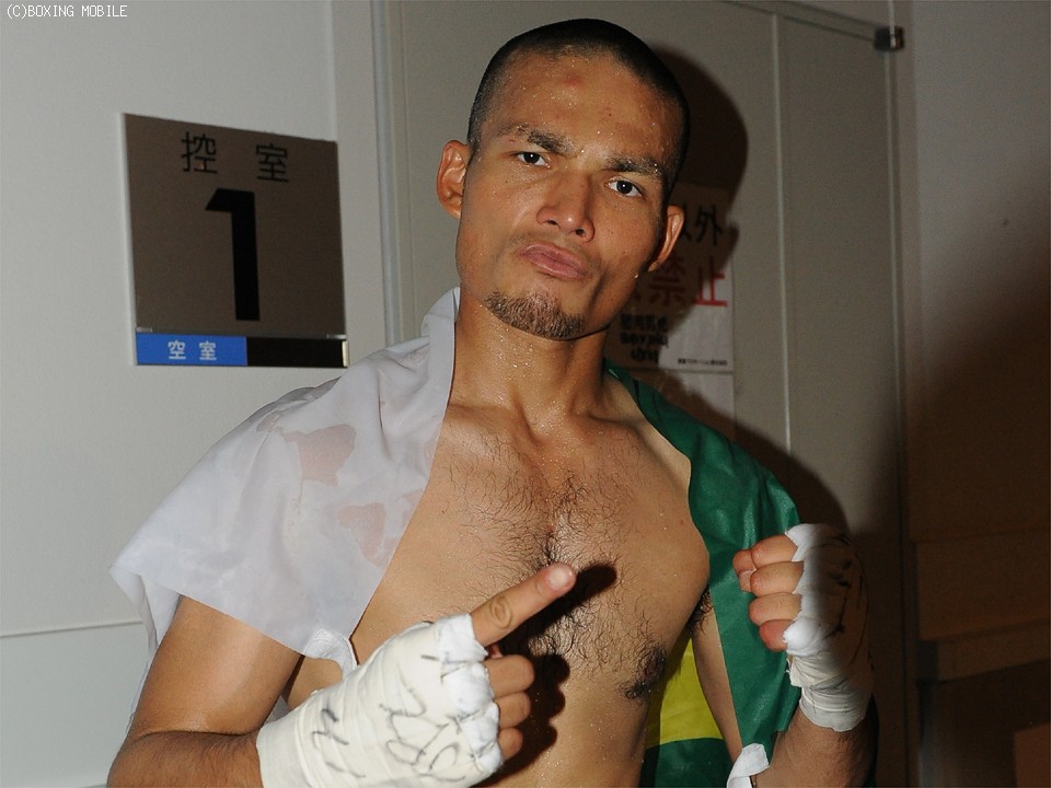 意気揚々に控え室へと戻った青木は、「左フックはイメージ通りに打て、手応えもバッチリ。あれで目が泳いだのが分かったので、冷静に行けばKOする自信があった。賞金ももちろん狙っていました」と一気呵成に試合を振り返り、日本と東洋太平洋のランク入りが確実となった今、「もっと練習をしてタイトルを狙います。チャンスをものにして静岡を盛り上げたい」と抱負とともに地元・静岡への郷土愛を示した。