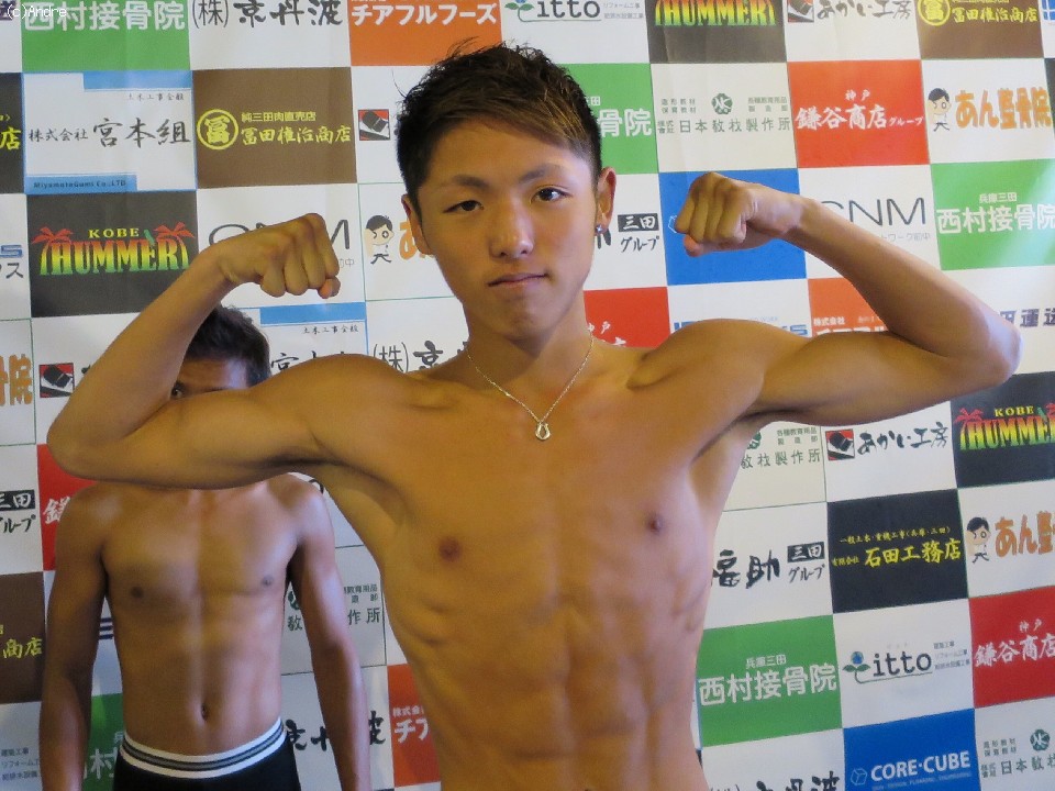WBAアジアミニマム級王者の加納陸(17=大成)がいよいよ明日、ノンタイトル6回戦で日本のリングに初登場。三田市内の大成ジムで前日計量に臨んだ加納は6日、「順調に仕上がりました」と笑顔で計量に向かった。