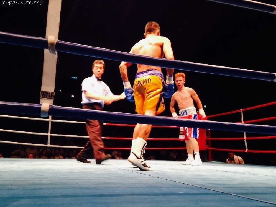 半年前の対戦では引き分けに終わったOPBF同級13位レオナルド・ドロニオ(フィリピン)との真価の問われる再戦。住吉はタイトルマッチの経験を生かすことができたのか。試合はスピードで一枚上回る住吉がジャブでペースを握るが、ドロニオも重たいパンチを返し好試合となった。中盤以降はボディ・ワンツーを決めた住吉がペースを支配。このまま判定をものにするかと思われた最終10R、ドロニオの狙いすました右カウンターが決まると住吉は膝を揺らしピンチに陥る。しかし住吉は会場の大声援に後押しされて果敢に打ち合って試合終了のゴングを聞いた。住吉が今回はハッキリとした形で決着をつけて復活を遂げた。