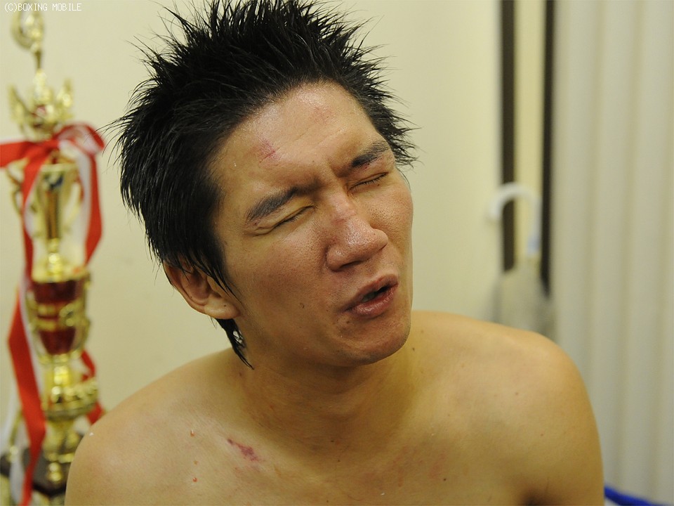 試合後、「立ち上がりは良かったが、相手の連打につき合ってしまった」と肩を落とした戸井。それでも最後まで果敢に打ち合った姿に三迫貴志会長は、「これも試練。またチャンスを作る」と労った。