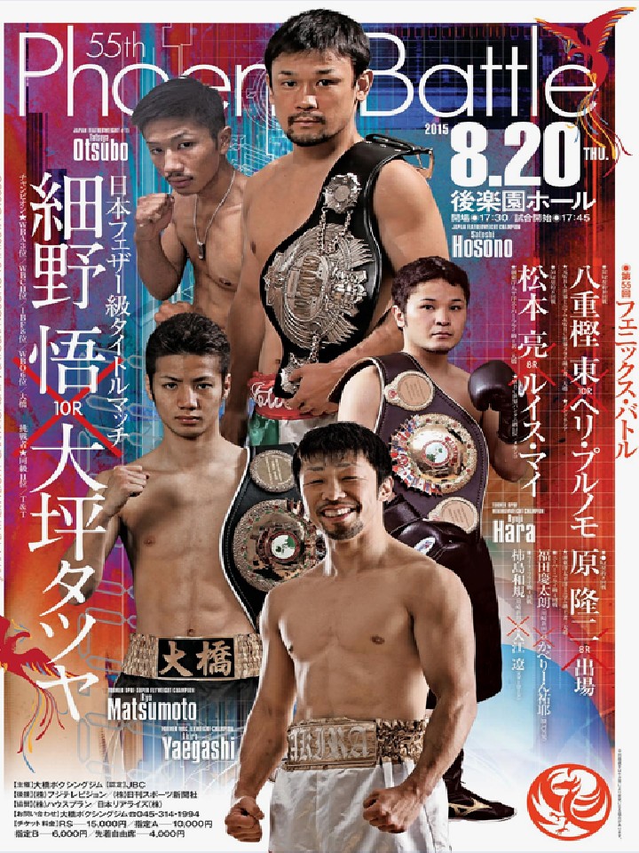 8月20日(木)に後楽園ホールで開催される「第55回フェニックス・バトル」のメインでは、日本フェザー級王者・細野悟(31=大橋)が同級11位・大坪タツヤ(25=T&T※試合当日は26歳)を迎えて3度目の防衛戦に臨むが、アンダーカードでも大橋ジムの主力選手が参戦することが決まった。