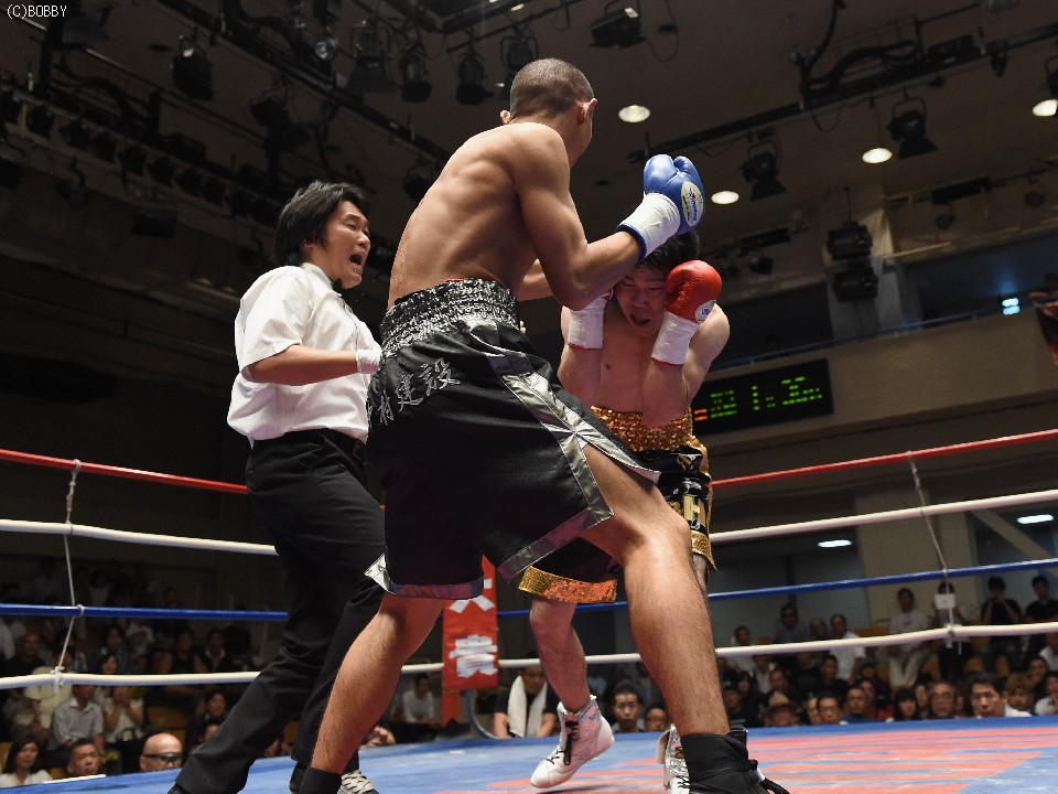 右ストレートで痛烈なダウンを奪った中村は、ダメージの残る児玉にパンチを浴びせ続けTKO勝ち。9月29日の決勝に駒を進めた。