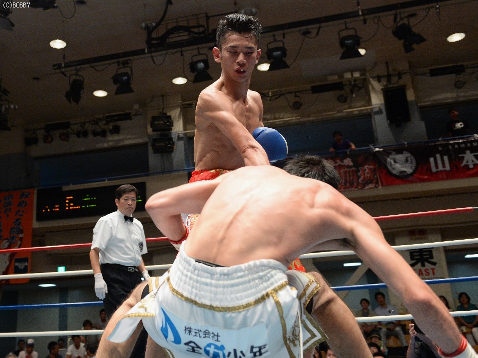 荒谷は初回からジャブで組み立て積極的に右ストレートで攻めると、序盤のうちに距離を支配。3回に高山の右を効かされ腰を落とす場面もあったが、決して深追いはせず冷静に試合を進めた。すると5回、右のオーバーハンドで追う高山に右のショートを決めダウンを先制。ここからさらに圧力を強めた高山に対し、荒谷は集中力を切らすことなく大振りのパンチをかわし続け、最終ラウンドは連打を打ち込み勝利を確実なものにした。ジャッジは割れたが、2者の支持を受けた荒谷が2-0の判定勝ちを収め、高山の日本とOPBFランキングを奪取した。