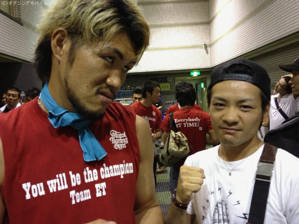 会場で細川と前原の応援に駆けつけた同門のジャンボ織田信長…とストロング小林。ジャンボには、マカオでの対戦オファーも届いているとのことで「練習はやってます」と復帰戦に向けて動き始めている。小林は「年内に試合をしたい」と話した。