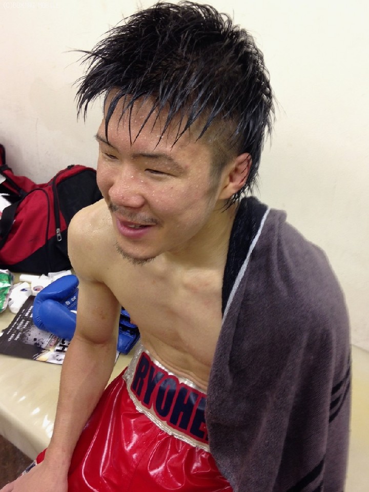 控室で安堵の表情を浮かべた高橋。「ダウンを奪い返してから、自分のペースで試合ができた。ダウンを奪ったのははじめてだったので驚いた」と声を弾ませたが、「アウトボクシングに徹してしまった。もっとアグレッシブに前に出ないといけなかった」と課題を挙げるのも忘れなかった。「練習でできていることがまだ試合で出ていない。ボクシングに幅をきかせたい」と反省の言葉が続いた。