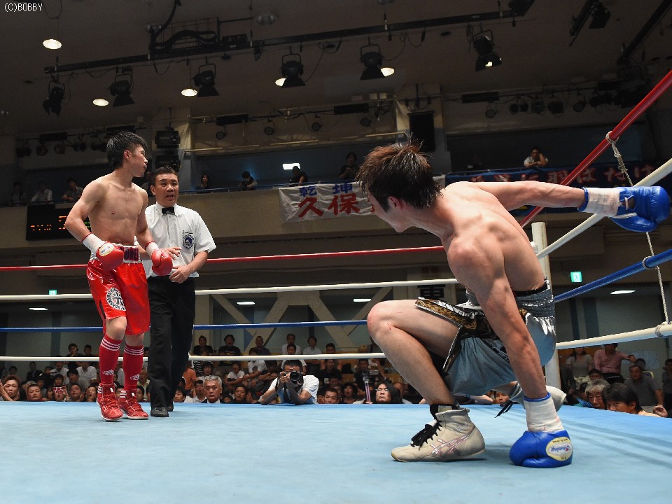 21日の後楽園ホール「ダイナマイトパンチ」セミファイナルで、キックボクシング世界王者から転向し、これが10戦目になる久保賢司(26=角海老宝石)が2014年度全日本新人王の高橋竜平(25=横浜光)と対戦した。久保はこの試合に負けたら引退を公言。自らを追い込み、崖っぷちの状況の中、技巧派のアウトボクサー高橋に挑んだ。