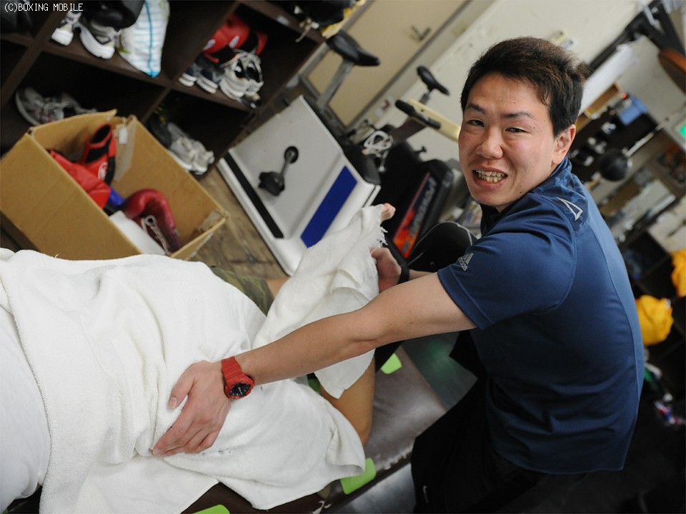 十二村が第2ステージに選んだのは、首都圏を中心に店舗を増やすストレッチ専門店「Dr.ストレッチ」のトレーナー。昨年10月に働きはじめ、半年でトレーナー全850人中、指名件数第2位の実績を上げるまでに至ったそうだ。現在は東京・三軒茶屋店に勤務しながら、角海老宝石ジム選手のメンテナンスも行っている。