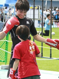 27日、ボクシングとサッカーのコラボレーションが実現。等々力競技場でおこなわれたJリーグ川崎フロンターレ2010年ファン感謝デーに同じ川崎市をホームとする、川崎新田ジムが友情参戦した。