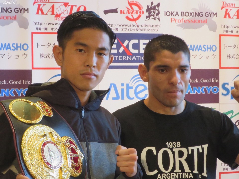 エディオンアリーナ大阪(大阪府立体育会館)で開催されるWBA世界フライ級タイトルマッチの調印式と前日計量が26日、大阪市内のホテルで行われた。王者の井岡一翔(26=井岡)と挑戦者のロベルト・ドミンゴ・ソーサ(30=亜)が揃って元気な姿をみせた。
