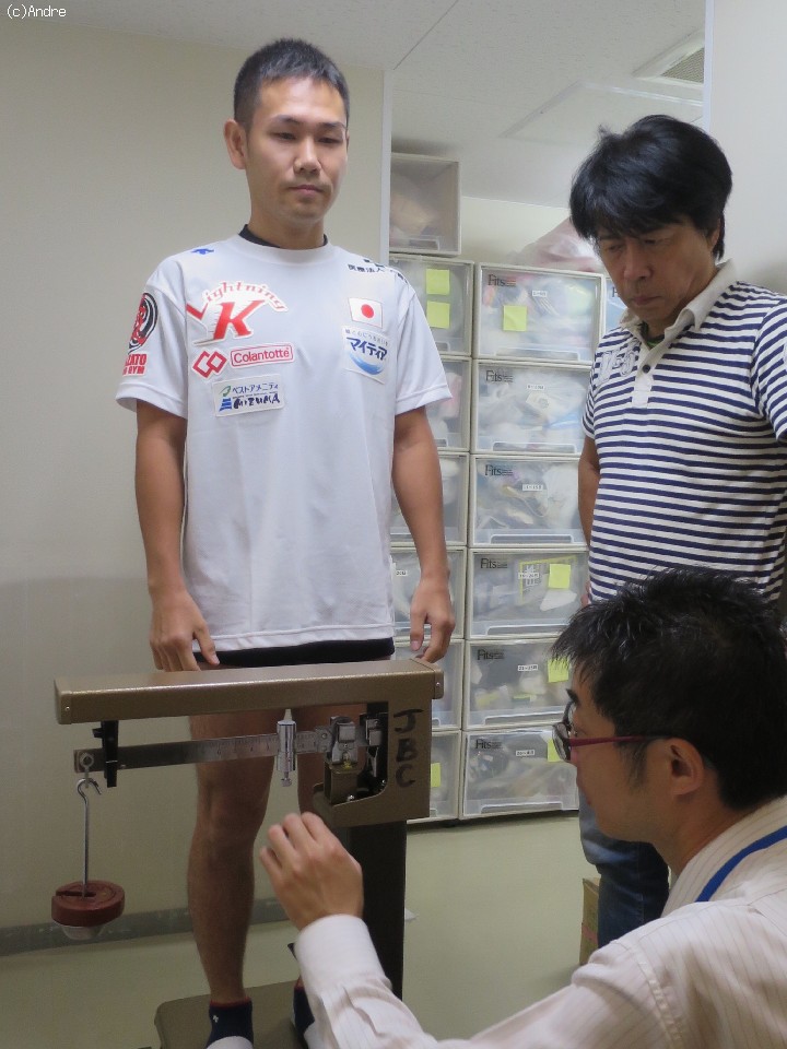 続いて計量を行った王者の高山は51.2kg(900gアンダー)で無事にパス。「昨日はいつも通りウナギを3匹とサムゲタンを食べました。今から試合まで少し時間もあるのでゆっくり体調を整えてきます」と王者の風格を漂わせた。