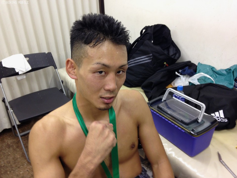 普段はオーソドックスのベガがサウスポーで来たことに「少し驚いたが、すぐに考え方を変えた。右のガードを意識した」と冷静に振り返り、「試合前に藤原俊志トレーナーにMVPを取りにいくぞとハッパをかけられたので取ることができてうれしい」と安堵の表情。「日本ランカーを目指し、ジムの先輩で同じ階級の井上岳志さん(日本Sウェルター級9位)に続きたい」と今後に向けて具体的な目標を挙げた。