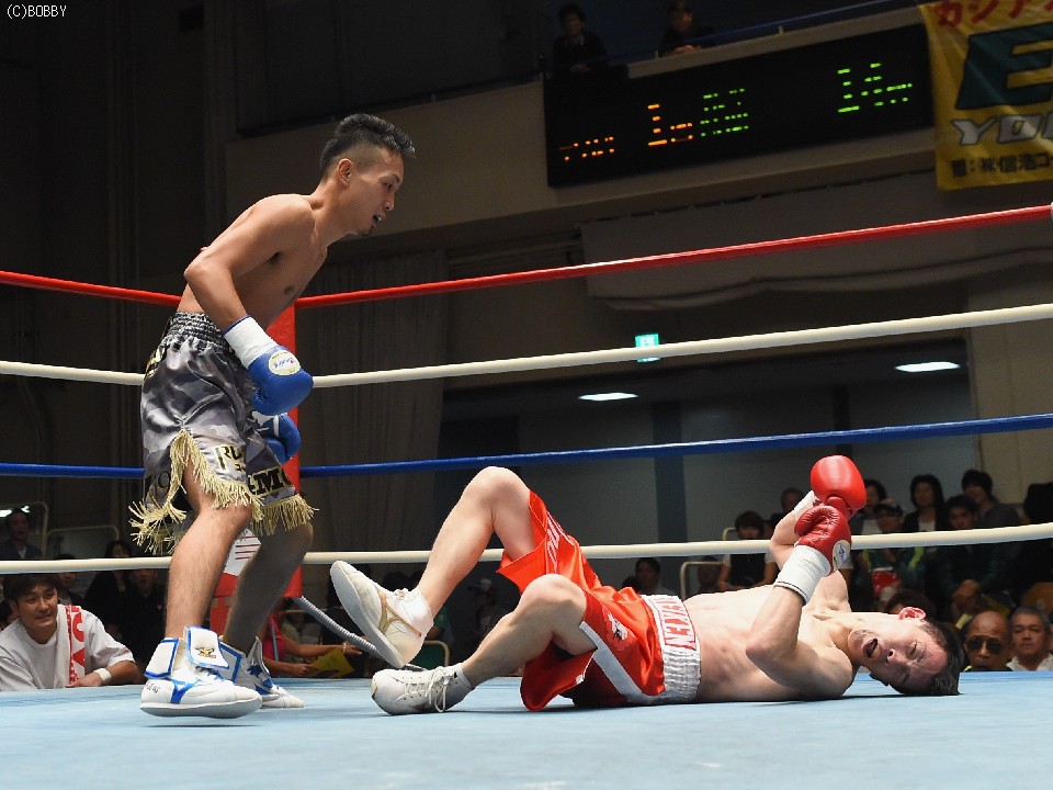 小野が痛烈にダウンで担架送りに