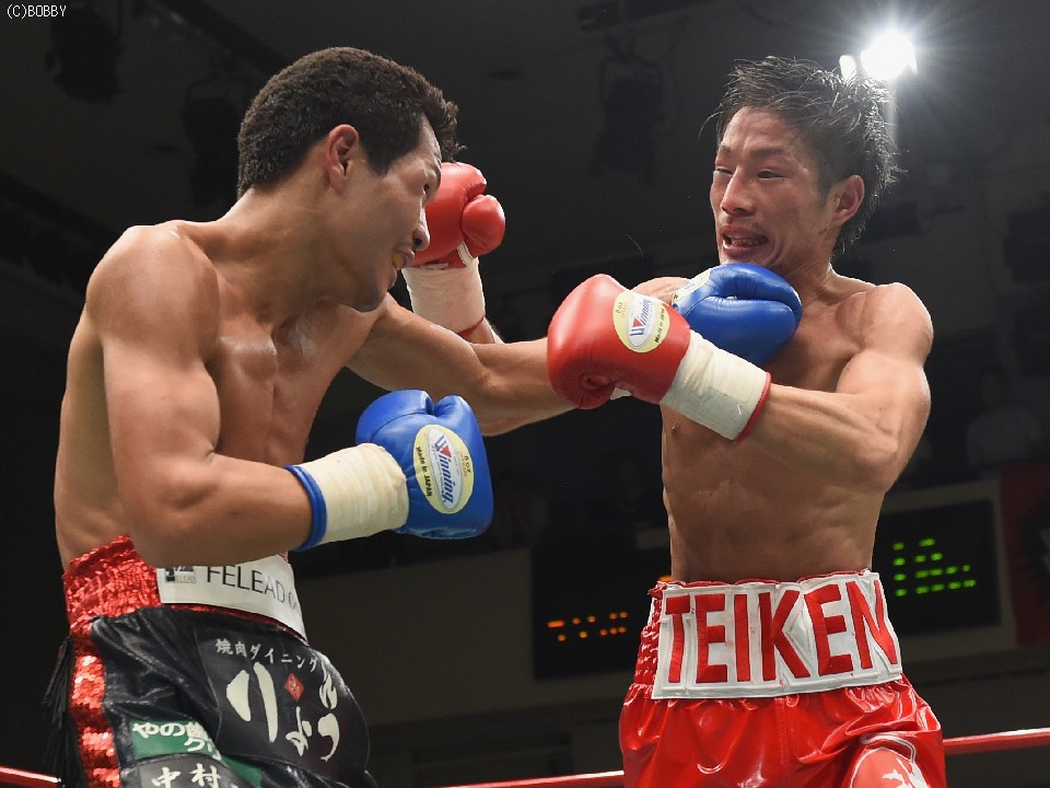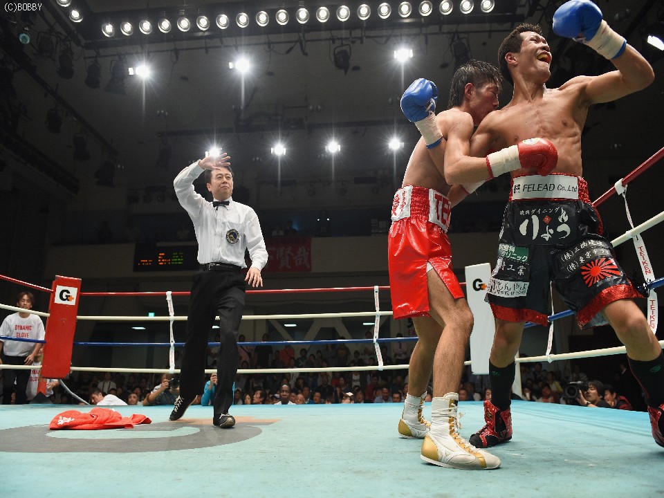 初回、勢いよく飛び出した山下だったが、鈴木のタイミングの良い右フツクをもらい手を突くダウンを喫した。しかし、山下はすぐに回転のあるワンツー、フックで反撃。3回にはパンチで鈴木の右目周辺が腫れあがった。その後は、鈴木も打ち合いに応じ、手に汗を握る攻防が続いたが、次第に山下のペースに。山下は6回に鈴木の懐に飛び込み、連打を決めるといよいよ鈴木の腫れあがった右目の視界が悪くなり、危険と感じた陣営からタオル投入。山下が再起戦を飾るとともに日本ランク復帰を濃厚とした。