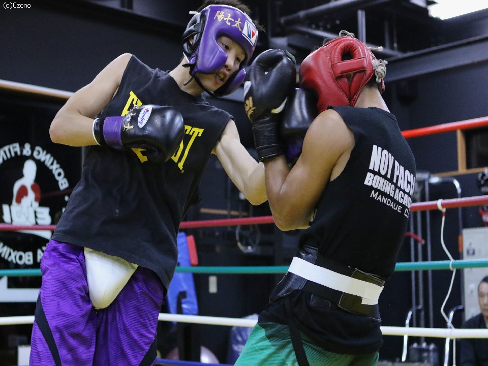 練習に入った丸田はこの試合のために森岡ジムが招聘したフィリピンボクサー(ジョルポール・バレロ)を相手に6ラウンドのスパーリングを披露。軽快な動きから繰り出すワンツーはパワー、スピードともにキレをみせた。ディフェンスの部分でも、7月に行った米国長期合宿で会得した「頭を振り的を絞らせない」テクニックを遺憾なく発揮し終了のゴングを聞いた。非凡な才能を見せる関西期待のホープは11月22日、満を持してリングに上がる。
