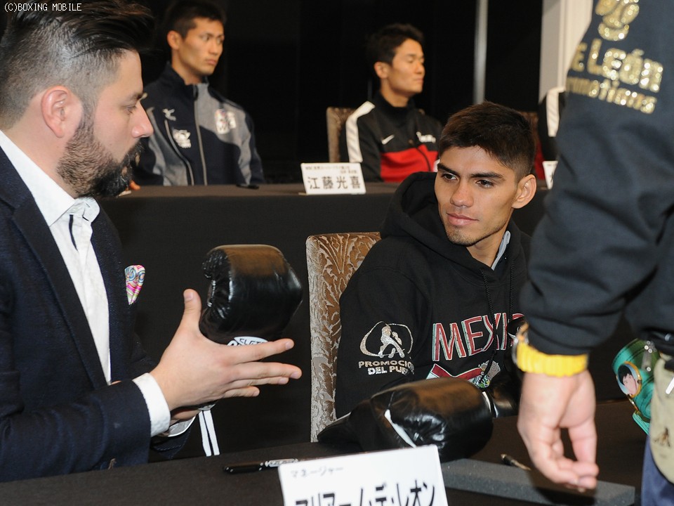 調印後のグローブチェックでは、赤いグローブを使う予定のゲバラが難色を示し木村と同じ黒を希望したが、すぐにJBCから予備のグローブが用意され、調印式ともに大きな混乱はなく終了。続いて質疑応答に移った。