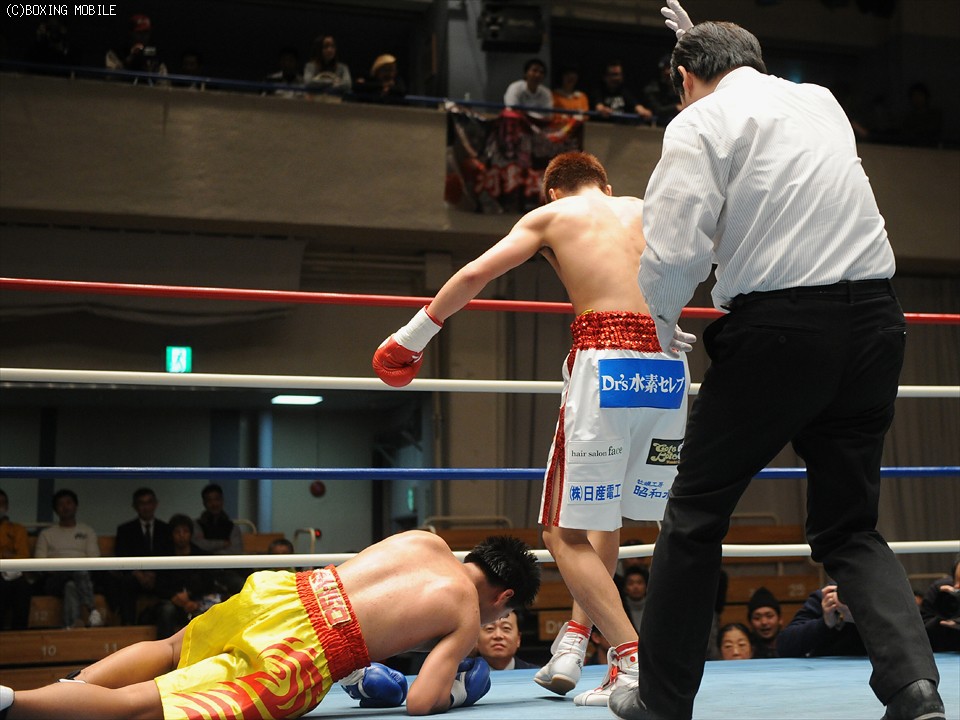 2Rに3度のダウンを奪い完勝