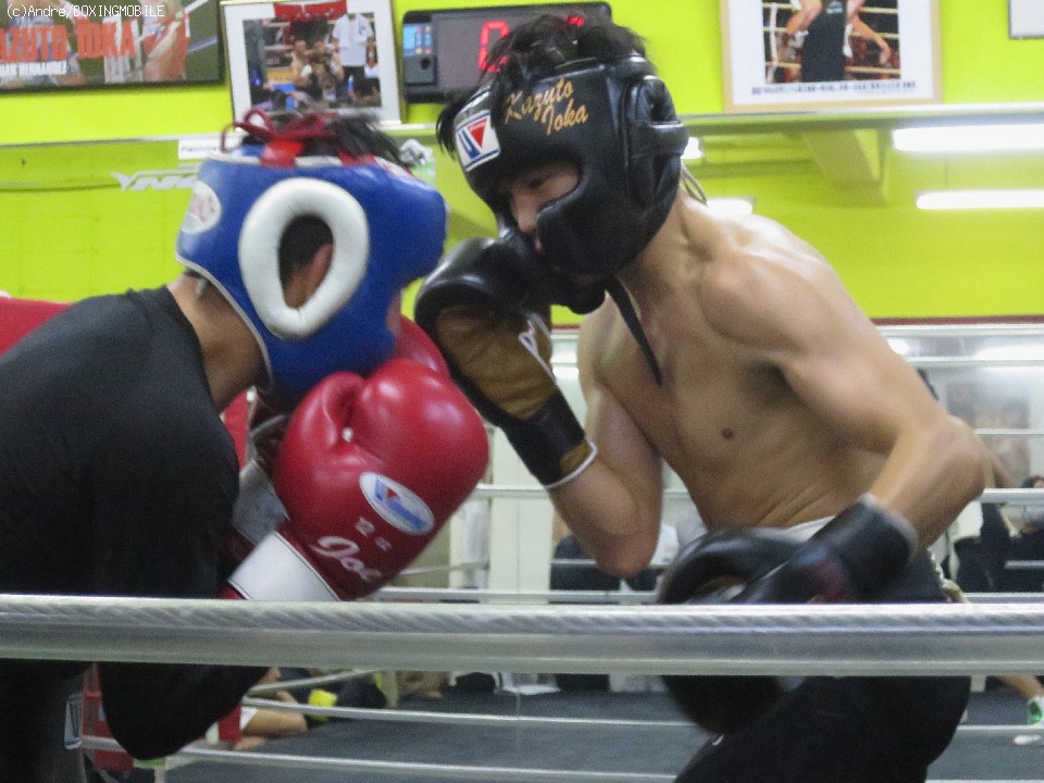 練習は井岡弘樹ジムに移籍したパブロ・カリージョ(27)を相手に3ラウンドのスパーリングを披露。左右のボディから右アッパーを突き刺すコンビネーションを決め状態の良さをみせた。体重もあと残り3kgということで5度目の大晦日決戦に向けて順調な調整を進める。