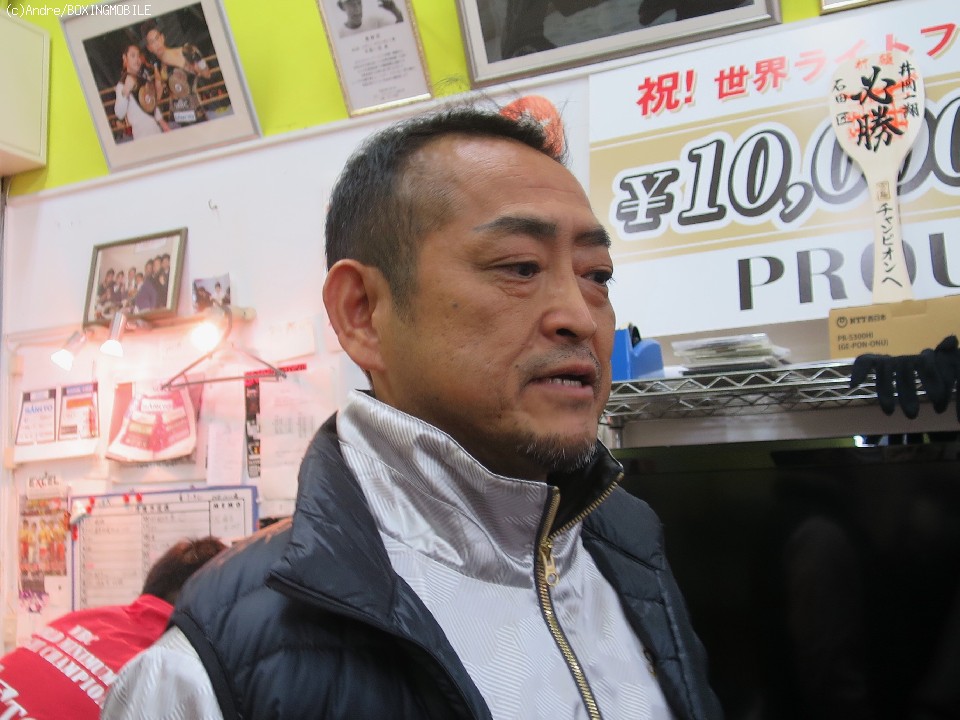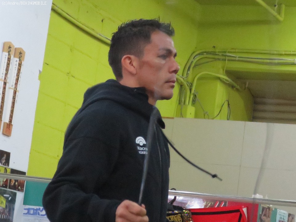 わずか90秒の練習を見守った井岡一法会長は「自信がないんやろ。昨日もフィットネスジムでちょこっと体を動かした程度らしいしな」と語った。秘策があるのではとの記者からの問いに「秘策があったら楽しみやなあ。もうちょっと動いてくれてたらこちらも警戒できるけど、まあ、残念やな」と複雑な表情で語った。