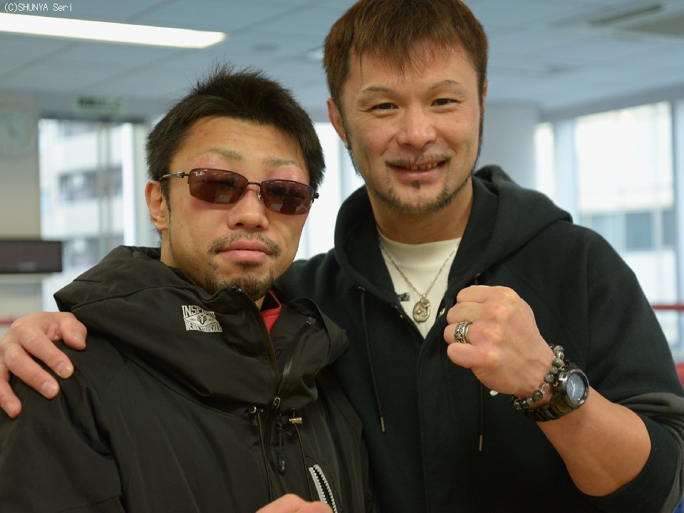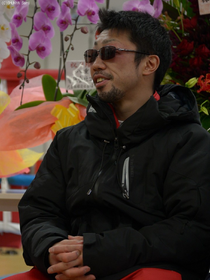 一方の八重樫は激闘の傷を隠すためにサングラスをかけて現れた。
