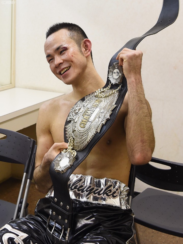 頭部の出血を拭いながらベルトを肩にかけた新藤は「カウンターに手応えがあり、要所は抑えていたので勝ったかなと思った