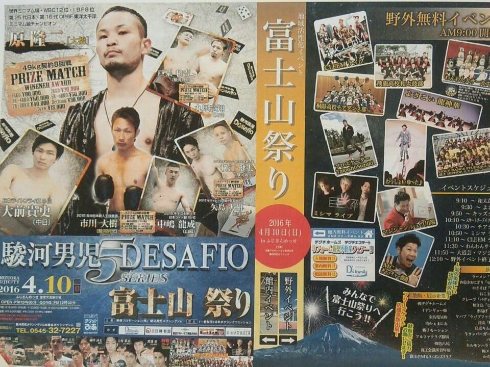 興行は4回戦から8回戦までの全10試合で行われ、すべての試合で賞金が懸かる。メインには静岡県出身で昨年惜しくも世界獲りに失敗した原隆二(大橋)の再起戦、日本Lフライ級8位・大前貴史(中日)との49.0kg契約8回戦が組まれているほか、セミには昨年度の全日本ライト級新人王・中嶋龍成(山龍)対中日本同級新人王・市川大樹(駿河男児)の8回戦と注目カードがラインナップ。